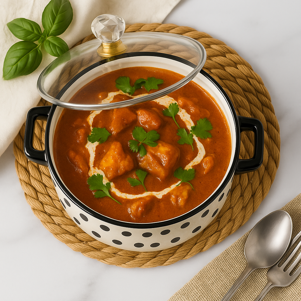 Serve in style with this elegant 7-inch ceramic casserole bowl. Designed with a black polka dot finish and a crystal-style plastic knob with gold detailing, it’s perfect for soups, stews, or curries. The ceramic pot and lid help keep food warm and add charm to any table.
