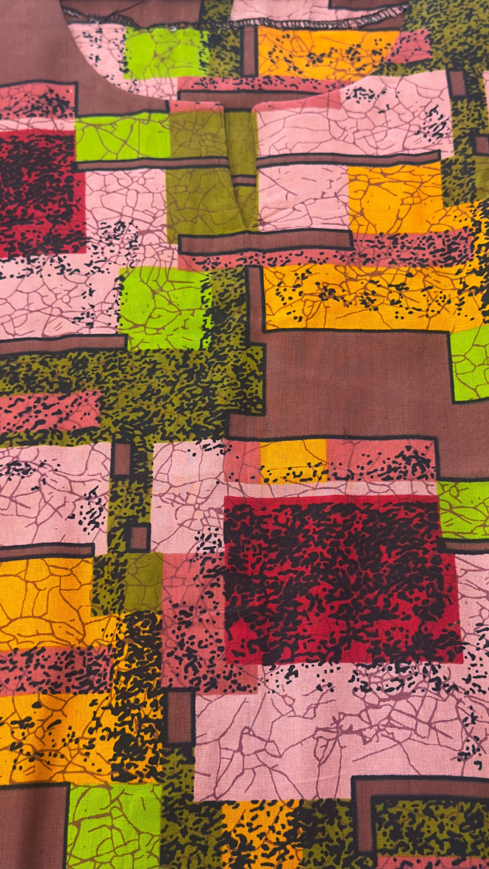 A vibrant and comfortable Ankara patchwork top blending traditional African prints with a relaxed everyday style.