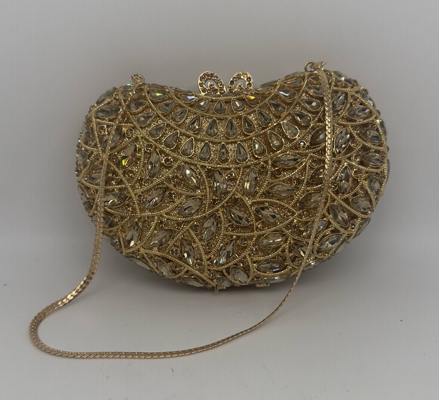 Luxury Gold Crystal Studded Clutch with Chain Strap